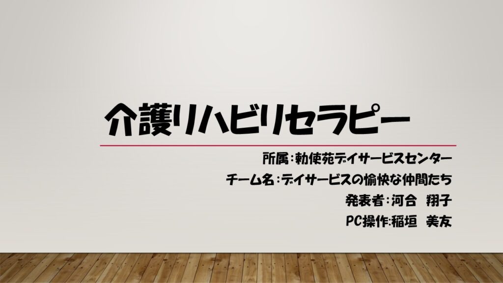 勅使苑デイサービスセンターのイチオシでもある介護リハビリセラピーの取り組みが、どんなきっかけで始まり、ご利用者様にどんな効果や結果をもたらしたのか、実践結果を報告致しました。