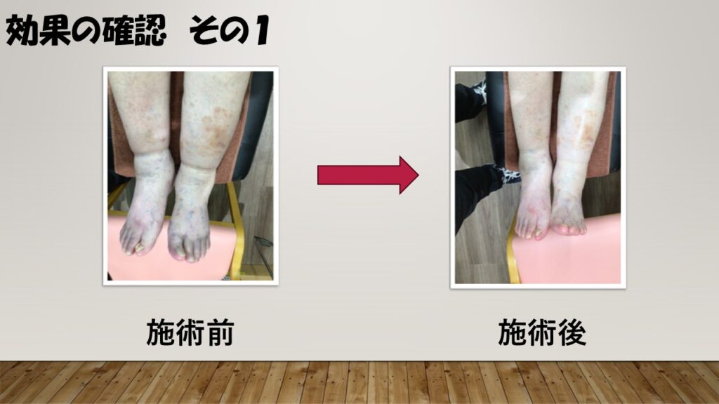 施術10分ほどですが、写真の様に浮腫みがスッキリ流れます!!
