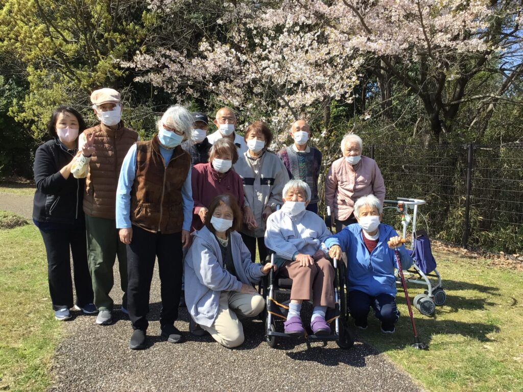 4月の2日・3日の二日間でデイサービス裏に位置する『勅使水辺公園』にお花見に行ってきました♪