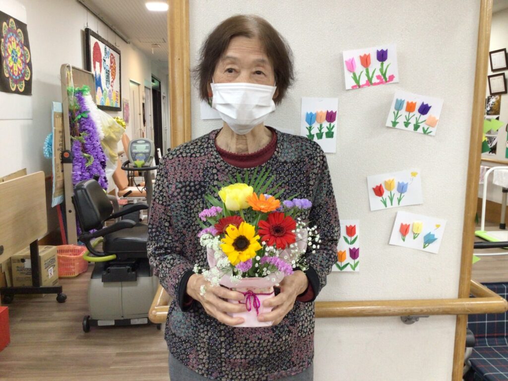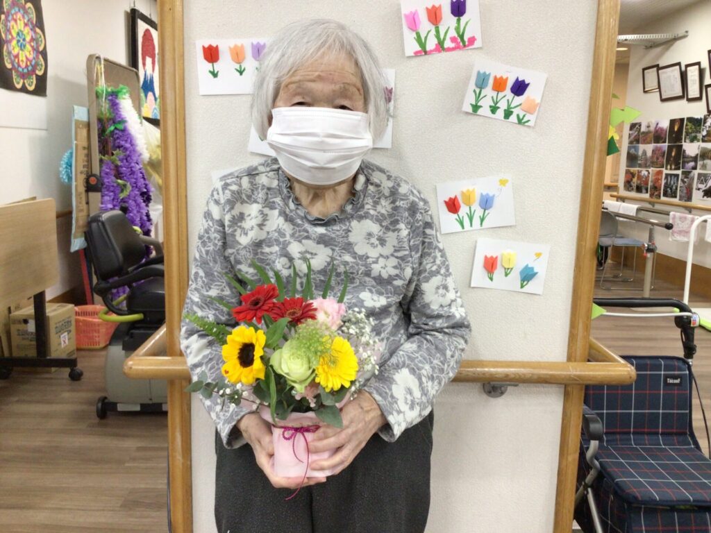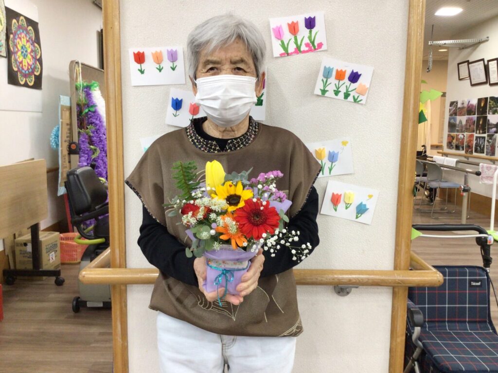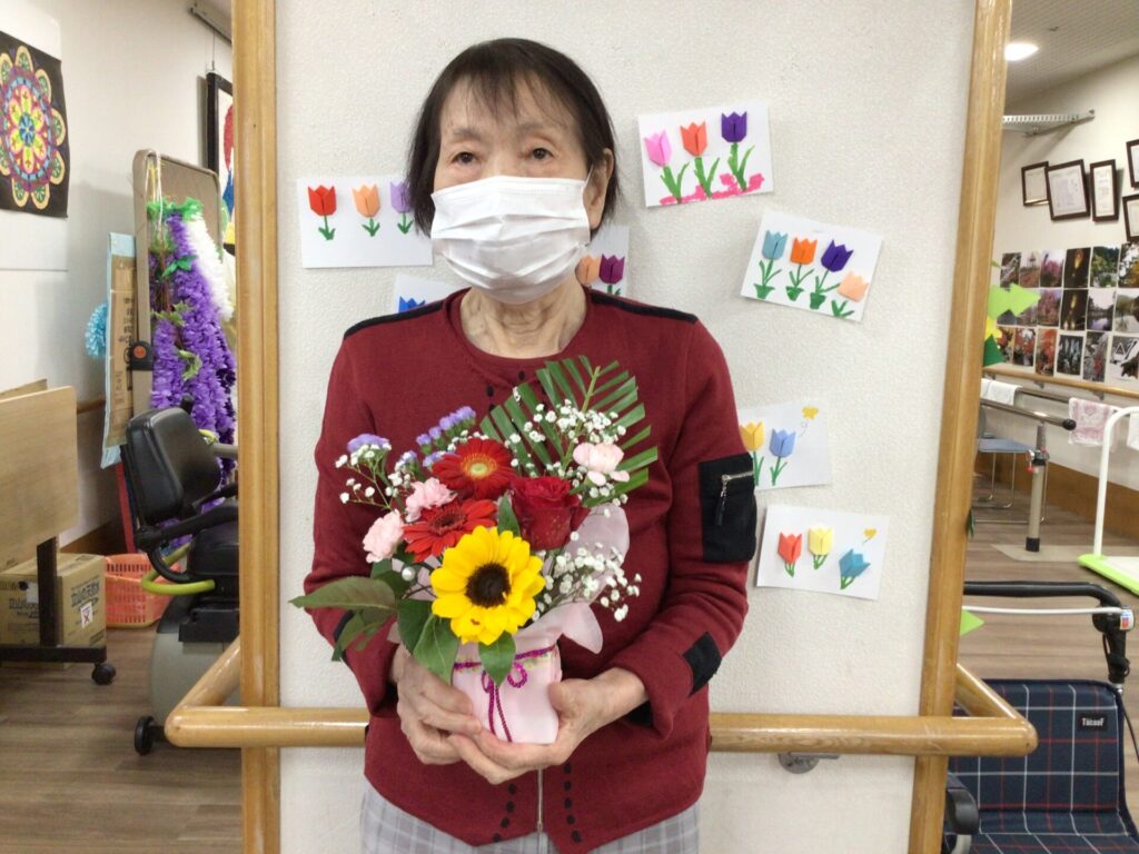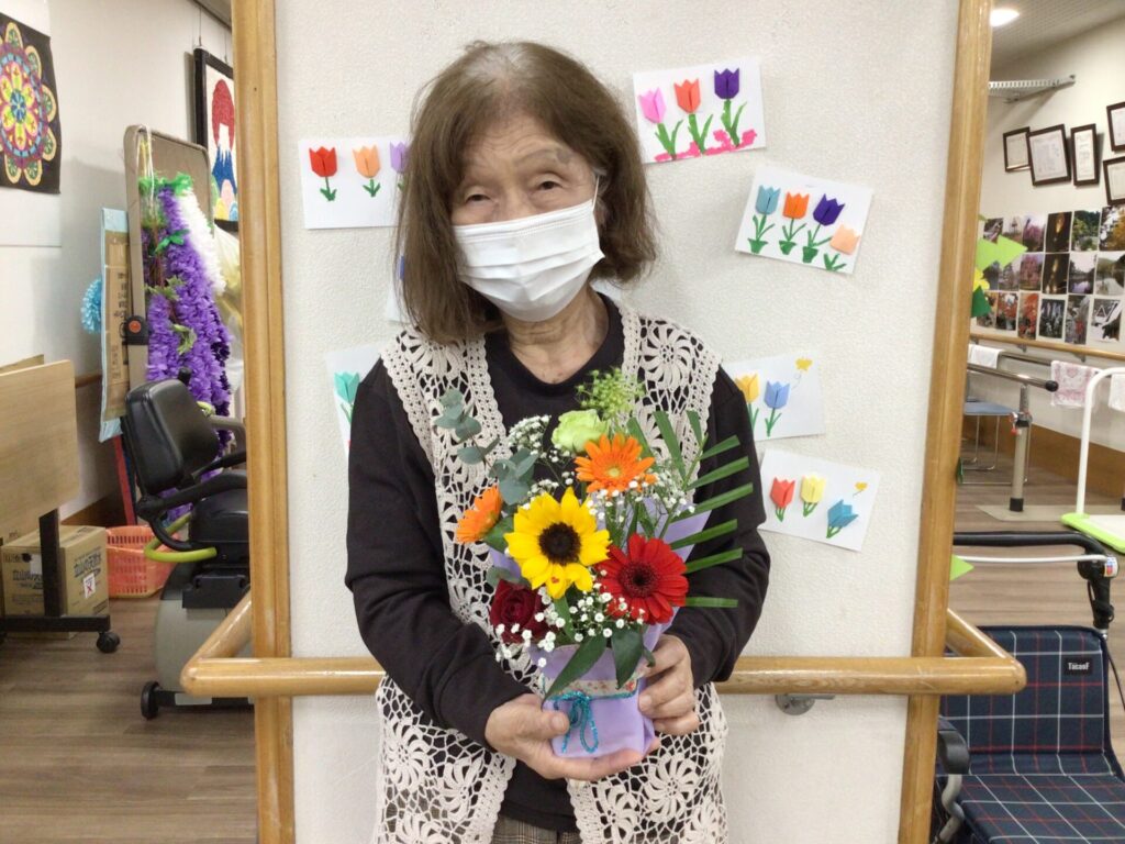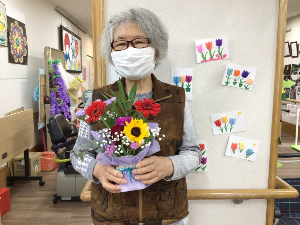 4月16日に勅使苑デイサービスセンターで講師を招いて、フラワーアレンジメントの慰問を行いました。